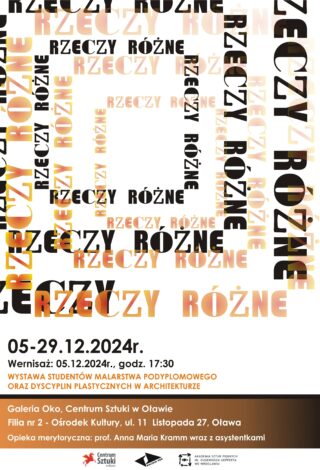 Prace zaprezentowane na wystawie „Rzeczy różne” potwierdzają uczestnictwo w procesie wszystkich autorów, którzy są absolwentami lub wciąż uczestniczą w edukacji artystycznej w ramach kursów podyplomowych organizowanych przez Akademię i Sztuk Pięknych im E. Gepperta we Wrocławiu a są to Dyscypliny Plastyczne w Architekturze oraz Podyplomowe Malarstwo. Wystawa ma charakter przekrojowy, pokazuje umiejętności oraz potencjał i zaangażowanie autorów.